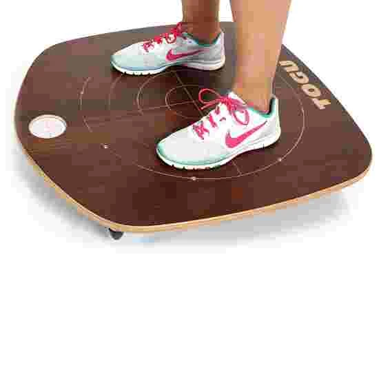 The Togu Posturedo consists of a sturdy wooden board and a dynamic air-filled pad. The pump included makes it easy to adjust the pad’s level of inflation and thus the difficulty level of the exercises. The level of difficulty can also be regulated using the four screw adjusters in the corners of the board (the longer the adjuster, the easier the exercise). Thanks to the Posturedo’s large plywood board, the user can stand on it in a variety of different ways.